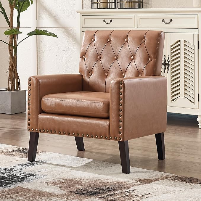 • Mid Century Modern Accent Chair – This vintage-inspired club chair combines a sleek silhouette with sturdy construction, making it a perfect addition to any living room, bedroom, or office. Its retro leather finish enhance your space with a touch of timeless elegance