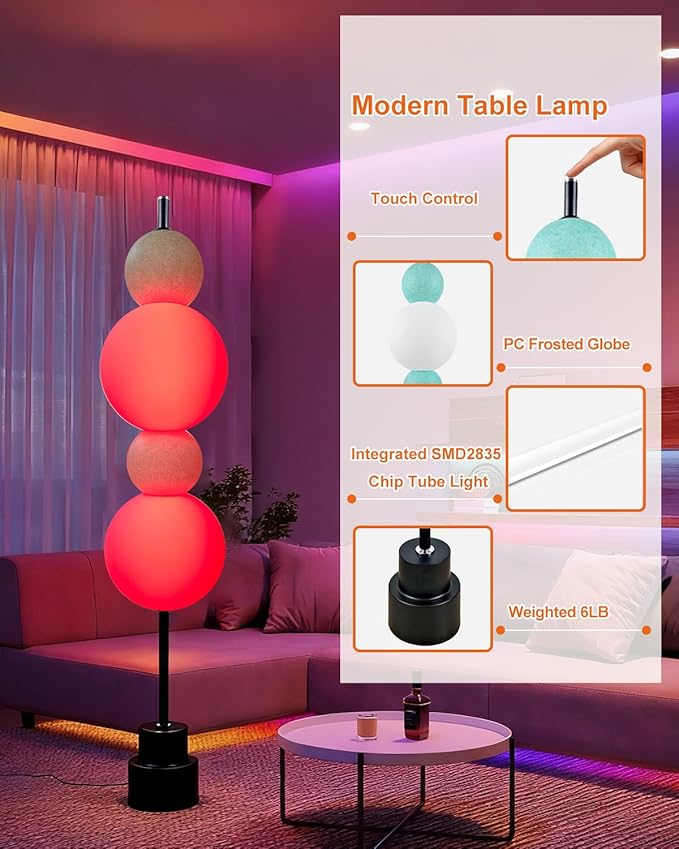 • RGB Color Changing + 3000K 🌈This mid-century modern floor lamp isn’t just a light—it’s your mood setter! It combines vibrant RGB color modes and a cozy 3000K warm white (perfect for daily use like reading or working).Switch from vivid red for movie nights,calm blue for relaxation, or soft warm white for morning coffee—all to match your moment.The integrated LED tube delivers flicker-free, that’s kind to your eyes. Plus, the 12W energy-saving LED bulb boasts an impressive 25,000-hour lifespan.