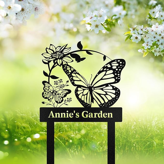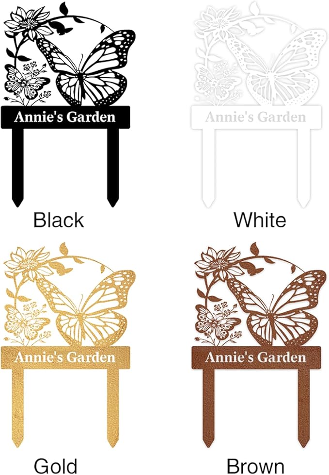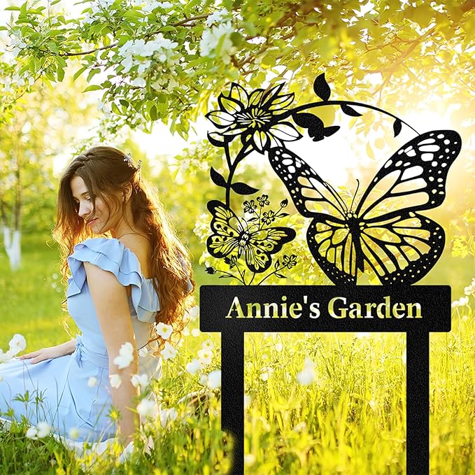 Personalized Garden Signs for Outdoor, Custom Butterfly Garden Sign with Stake Metal Waterproof, Customized Metal Name Sign, Patio Yard Decor Gardening Gift
