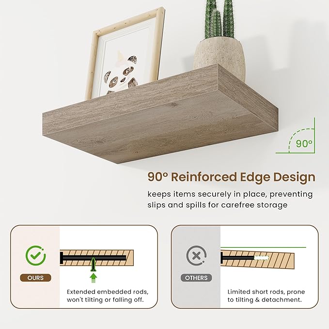• [Compatible with any Style]:Whether style is modern or vintage, this rustic floating shelves seamlessly adapt. Available in diverse colors and sizes, they cater to all home decor needs.The reinforced,extra-wide design with exceptional load-bearing capacity ensures creativity is not constrained,transforming your space into a perfect haven