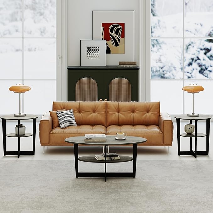• 2-Tier Open Storage: Each end table features a practical 2-tier open shelf design, providing ample space for keeping living room essentials organized and within reach. Great for holding remotes, books, magazines, cups, or decorative accents, while maintaining a tidy look.