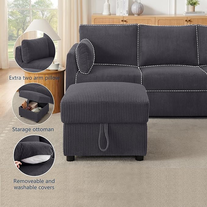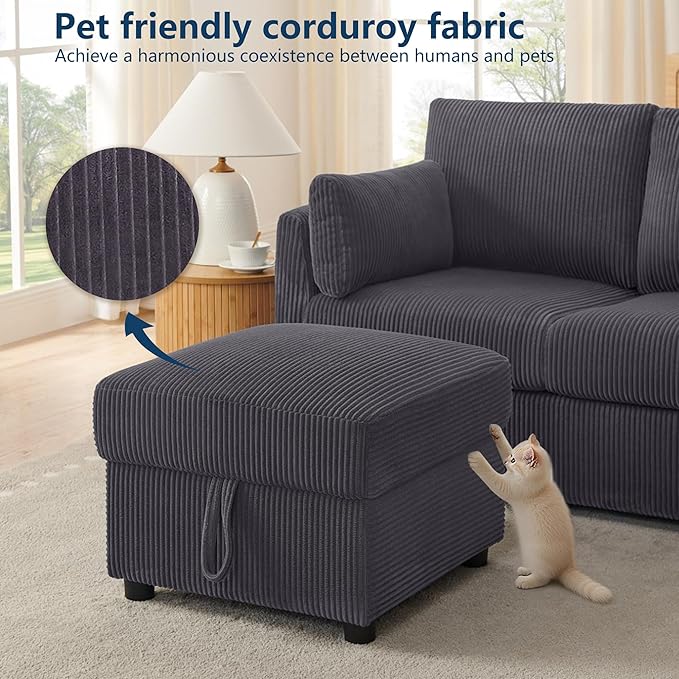 • 【Breathable Coduroy Fabric 】 The corduroy fabric has a unique texture, with a soft feel. The dark gray tone is classic and versatile, able to blend into various decoration styles such as modern minimalist and luxury, enhancing the aesthetic appeal of the space.