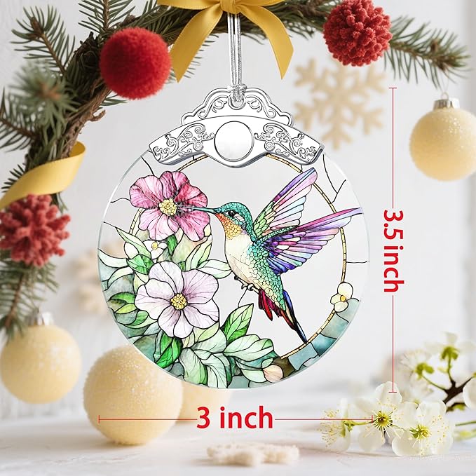 Stained Glass Hummingbird Christmas Ornament: Christmas Tree Ornaments & Decor, Holiday Decor – Holiday Presents, Gift Exchange Ideas & Elegant Keepsake for Family, Coworkers & Friends