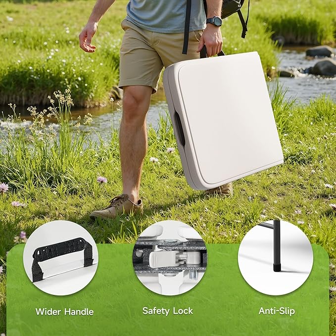 • Sturdy & Safe Construction: Features solid corner braces, non-slip foot pads, and a safety lock to prevent accidental collapse during use on uneven terrain like campsites or patios.