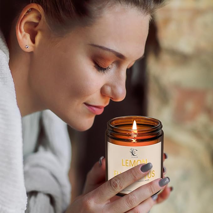 • Luxury Home Candle: Housed in an elegant amber glass jar, this 7oz lemon eucalyptus scented candle serves as both a sophisticated decor piece and an exquisite gift. The warm amber vessel complements the candle's vibrant fragrance, creating a harmonious balance of visual charm and refreshing citrus-herbal aromas that elevate any living space
