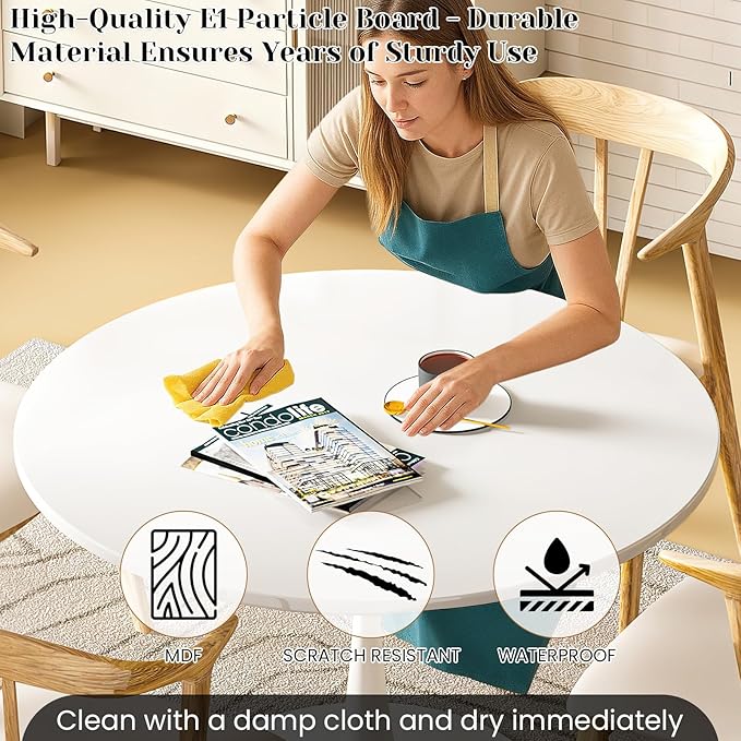 • 【Sturdy and Durable】: This round table kitchen is made of high-quality MDF tabletop, small dining room table can support 220Ibs, circle dining table provides a sturdy and durable experience. The round dining table pedestal weight secures your mesa redonda de comedor to any floor without taking up your legroom at the same time.