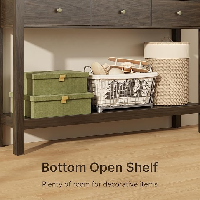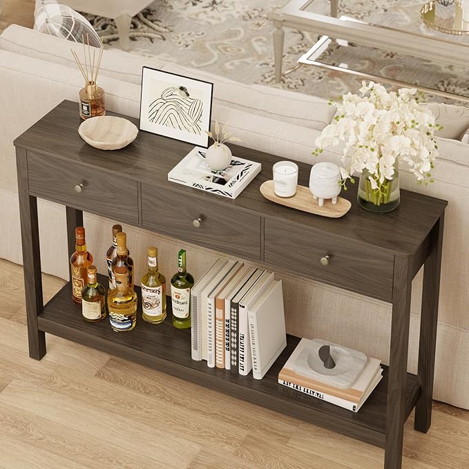 Gizoon Sofa Table with 3 Drawers, Modern Accent Console Table with Open Shelf, Large Storage Space, for Living Room, Front Hall, Entrance Hall, Study Room, Dark Brown