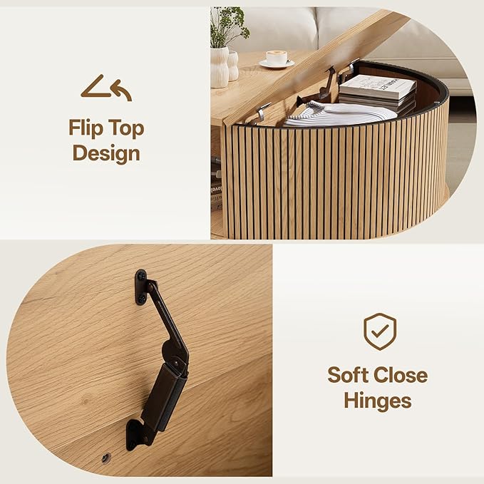 • 【Practical and safe design】 Our coffee table features a soft close hinges system that can close the tabletop quietly—close design to prevent pinching. The silent sliding door facilitates your storage of items and also adds a touch of elegance.