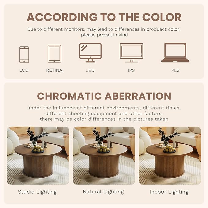 • Fluted Coffee Table: Our coffee table boasts a spacious round top, measuring 31.5 inches in diameter, perfect for keeping your living room supplies organized and your daily essentials close at hand, helping you maintain a neat and tidy living space.