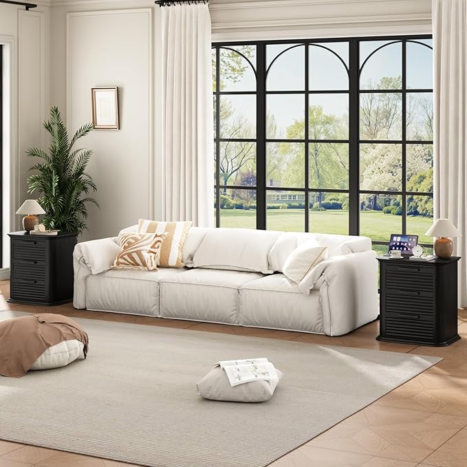 • 【3 Large Capacity Drawers】Designed with 3 smooth sliding drawers and a large tabletop (22"W x 15.7"D), this end table offers practical storage for books, electronics, or bedside essentials. Each drawer keeps your items organized and out of sight.Large cable hole easily tuck power cords and charging cables, keeping them neat and organized.
