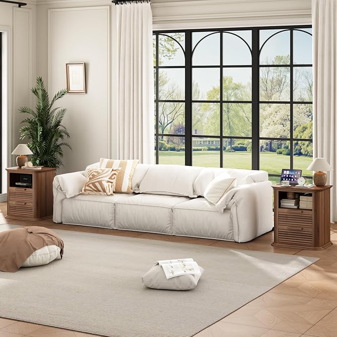• 【Modern Fluted Design & Curved Profile】 This nightstand’s slatted panels capture natural elements’ gentle yet powerful rhythm, plus curved profile and horizontal wave-fluted drawers add modern charm. With rounded corners, it blends nature’s elegance and durability—bringing mid-century luxury, fitting any space, and ensuring kid safety.