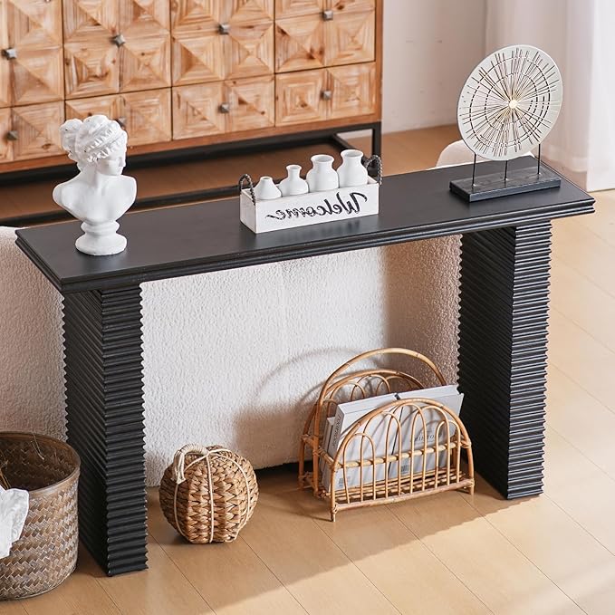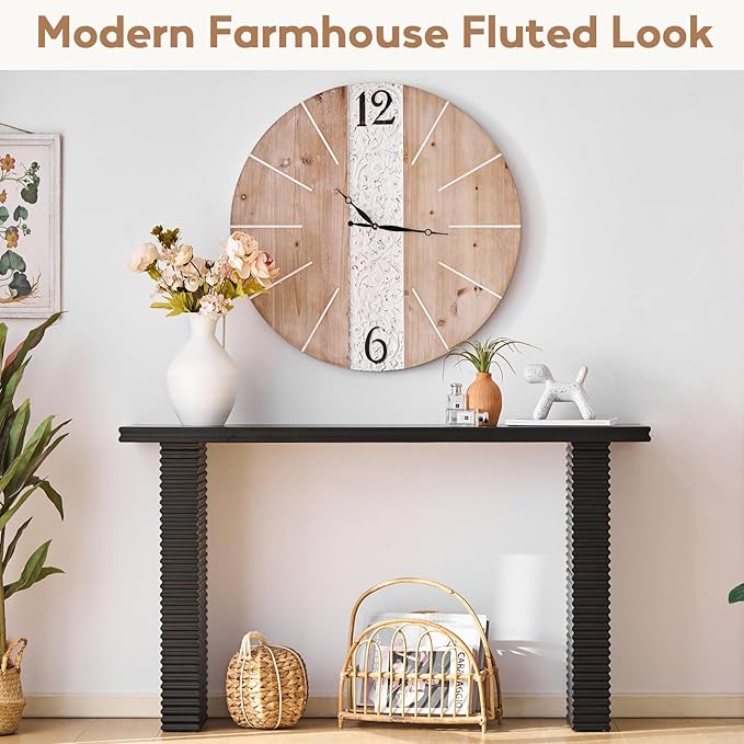 • 【Unique Fluted Design & Modern Farmhouse Style】This wood console table features a thick fluted seat edge paired with matching wide fluted legs, blending rustic farmhouse charm with modern simplicity. The cohesive design highlights natural wood grain/sleek black finish and adds a distinctive crafted character to any room