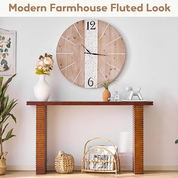 • 【Unique Fluted Design & Modern Farmhouse Style】This wood console table features a thick fluted seat edge paired with matching wide fluted legs, blending rustic farmhouse charm with modern simplicity. The cohesive design highlights natural wood grain/sleek black finish and adds a distinctive crafted character to any room
