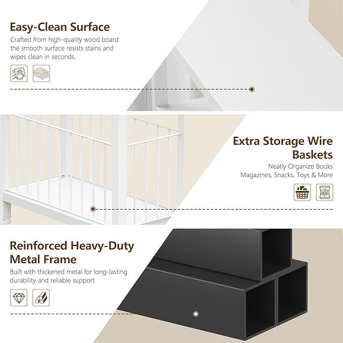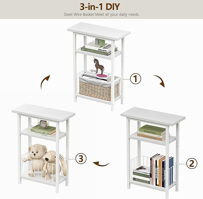 • [3 in 1 DIY] This Multi-purpose small tables comes with a adjustable meatl wire basket, which can be exchanged freely between shelf and basket upon your preferences. This narrow nightstand can be used as an operating table in an entryway or hallway, or as a skinny sofa table, small office table