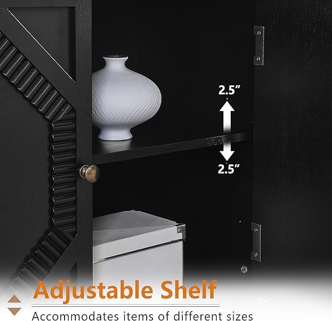 • [ Spacious Storage with Adjustable Shelf ] - Our sideboard cabinet with storage boasts two large compartments, featuring a adjustable shelf. Enjoy customizable storage solutions for dinnerware, kitchen essentials, and decorative items. It's perfect for maximizing your space and keeping your belongings organized efficiently.