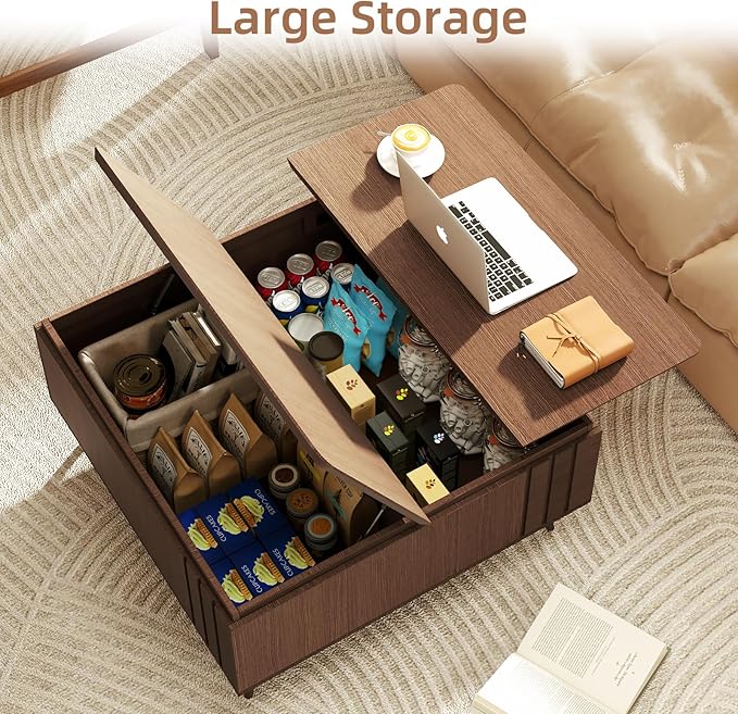 • Spacious Storage Capacity: Measuring 35" x 32.7" x 11.8", this storage coffee table offers ample room for blankets, board games, magazines, and tech essentials. Enjoy a clutter-free space while keeping everything within easy reach