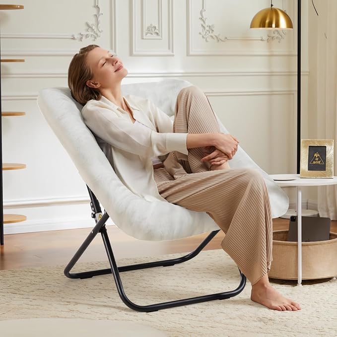 DUMOS Comfy Chair for Adults, Soft Faux Fur Folding Lounge for Bedroom Living Room Dorm Rooms Flexible Reading Chair for Teens, Large Size Foldable (Square-Creamy)