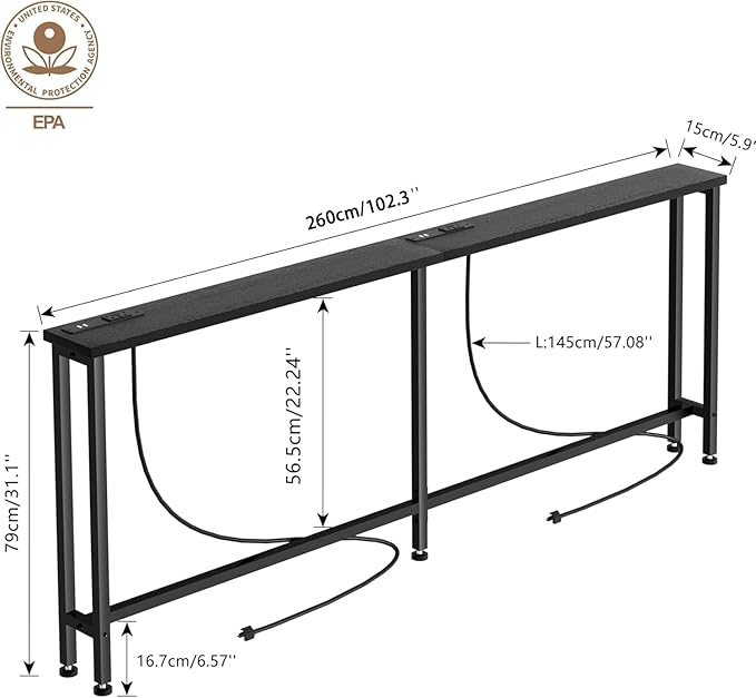 • 【Multi-Functional Sofa Table】Equipped with 2 standard 120VAC outlets, 4 AC Plugs & 4 USB Ports, and a 4.9' ft power cord, this sofa table efficiently utilizes space behind your sofa for charging laptops and mobile phones. Its built-in power hub conveniently powers lamps, phones, laptops, and more, making it an ideal choice for various electronic devices including printers and photo printers.