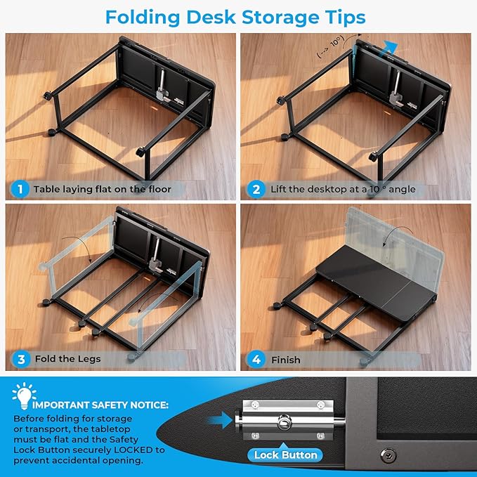• Easily Mobile & Portable: Equipped with 4 smooth-rolling lockable wheels for easy movement around your space. This collapsible desk is easy to lift, carry, and transport from room to room. It’s your go-to desk for any corner of your home, whenever you need it