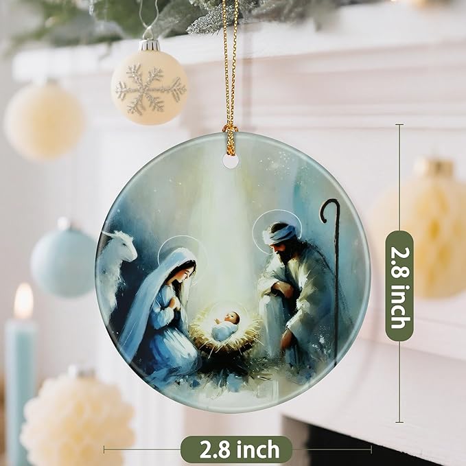 • 🎁【Exquisite Craftsmanship】Crafted from premium ceramic, this religious ornament is durable with vivid, fade-resistant colors that retain its vibrancy for years. Featuring Jesus’ Nativity scene, it captures a core Christian faith moment. Size: ~2.8×2.8 inches, ideal for Christmas trees, wreaths, or any religious holiday display.