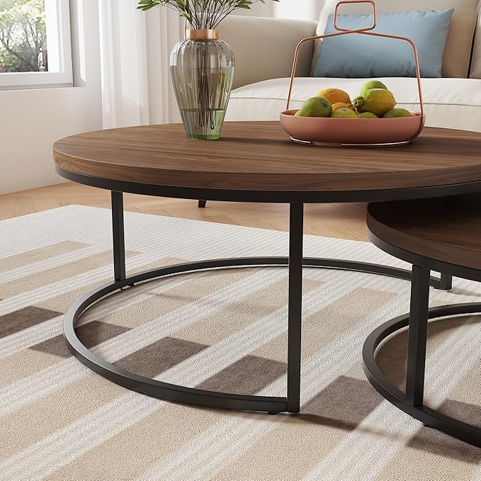 • Modern Nesting Design:This set includes two round coffee tables with a versatile nesting design, allowing you to stack them or use separately based on your space and style preferences. Perfect for modern living room, bedroom, and office decor