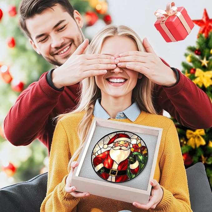 • 【Classic Festive Santa Claus Design】Bring festive cheer to your home with this beautifully crafted stained glass suncatcher! Featuring a joyful Santa Claus holding his gift bag in a vibrant red suit, this holiday suncatcher captures the timeless magic of Christmas, making it a perfect addition to your seasonal decor