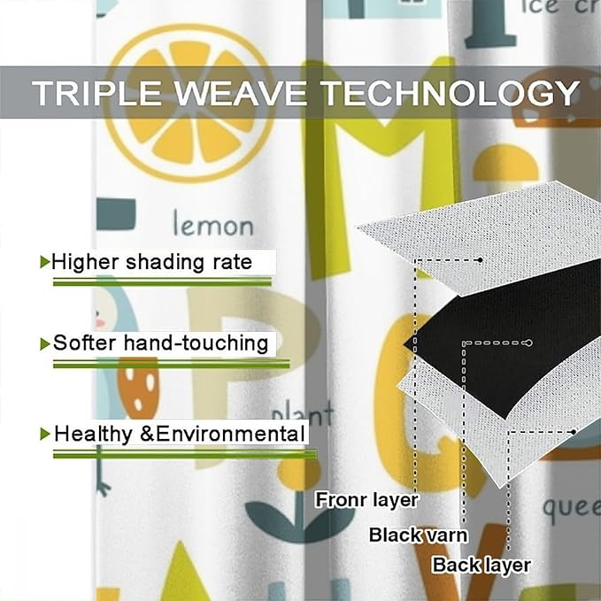 BAEKJIN Kids Alphabet Curtains,Catoon Animals Pattern Print Decor Window Drapes for Bedroom Living Room 42x45 Inch