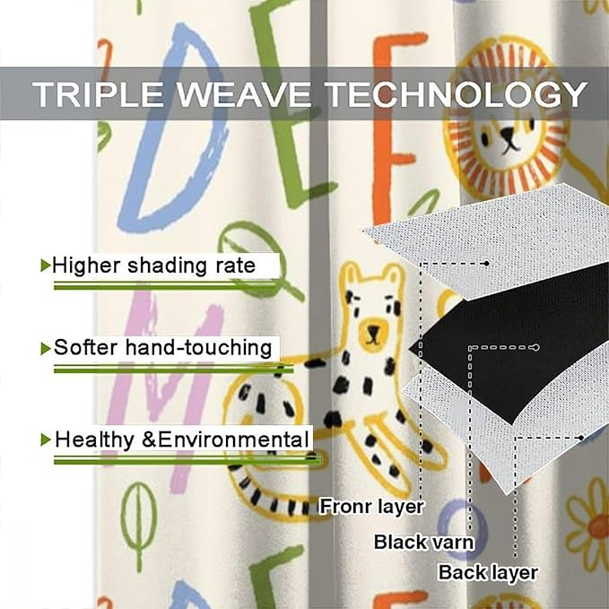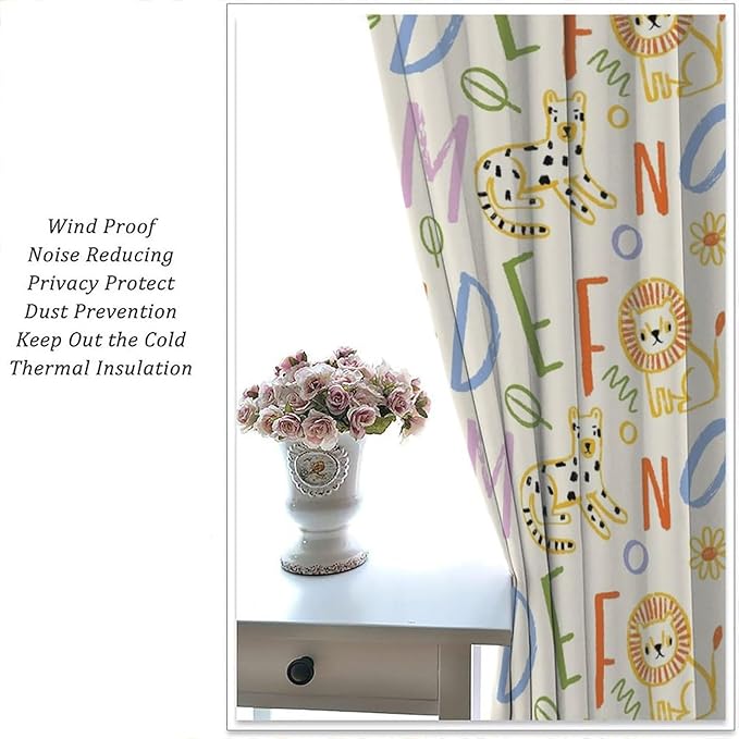 BAEKJIN Kids Alphabet Curtains, Hand Drawn Colorful ABC Letters and Animals Pattern Print Decor Window Drapes for Bedroom Living Room 42x45 Inch