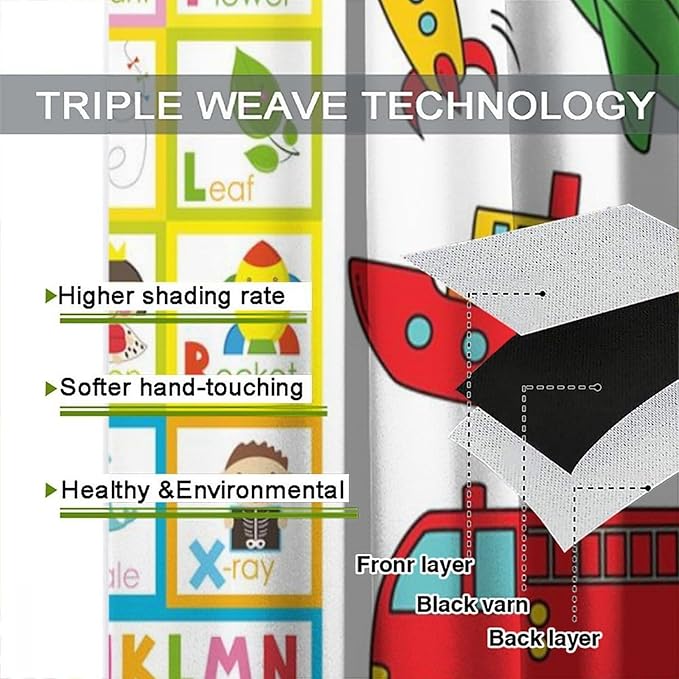 BAEKJIN Alphabet Curtains,Numeration Table and Catoon Transportation Pattern Print Decor Window Drapes for Kids Bedroom Living Room 42x45 Inch