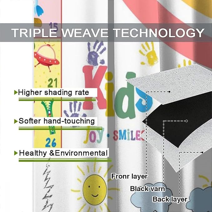 BAEKJIN Kids Alphabet Curtains,Crayon Rainbow and Cute Cartoon Animals Pattern Print Decor Window Drapes for Bedroom Living Room 42x45 Inch