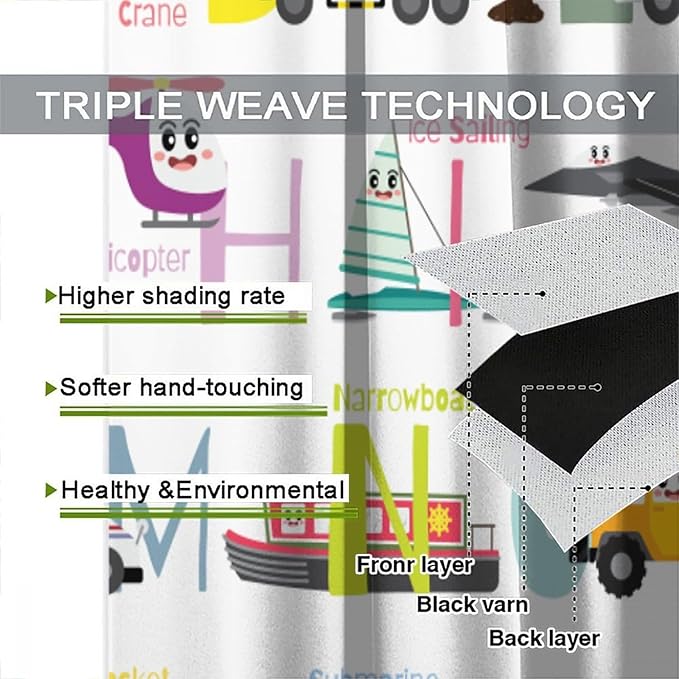 Alphabet Curtains,Catoon Transportation Pattern Blackout Print Window Drapes for Kids Bedroom Living Room 42x45 Inch