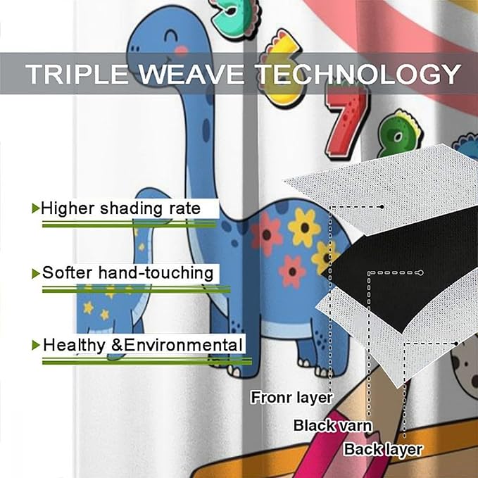 BAEKJIN Dinosaur Alphabet Curtains,Numeration Table and Catoon Dinosaur Pattern Print Decor Window Drapes for Kids Bedroom Living Room 42x45 Inch