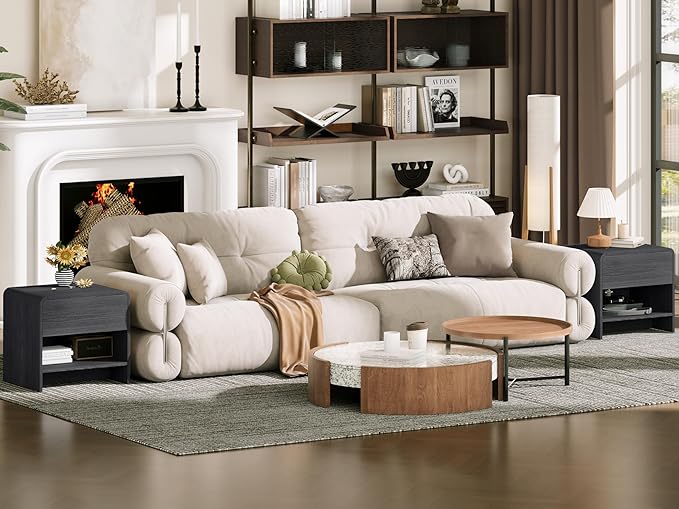 • Ample Storage Space---Measuring 20” W x 15.4” D x 17.7” H, this wood night stand offers generous storage with it’s drawer and storage shelf. The tabletop easily holds coffee, snacks, or décor, while the drawer keeps personal items out of sight and the open shelf provides quick access to everyday essentials, keep your living room tidy, organized, and clutter-free.