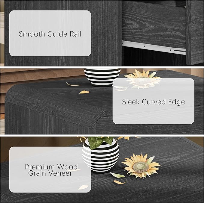 • Modern Industrial Style Dresser---Designed with a sleek black wood-grain finish and minimalist structure, this end table blends modern sophistication with industrial charm. Its timeless look complements various décor styles, from contemporary and rustic to vintage and classic, making it a versatile addition to bedrooms, living rooms, nurseries, or playrooms.