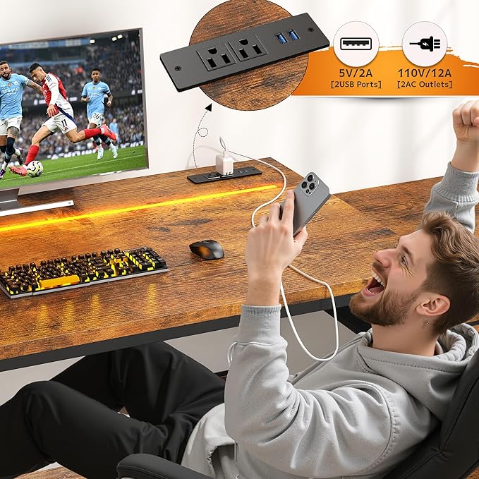 • Computer Desk with Charging Station:This office desk features 2 AC outlets and 2 USB ports, making it easy to charge your phone, tablet, gaming devices, or desk lamp. Whether you’re working, studying, gaming, or crafting, it keeps your workspace powered and convenient.