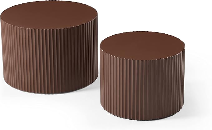 Nesting Coffee Table Set of 2, Modern Round Wooden Circle Accent Coffee Tables for Small Spaces Living Room Bedroom Balcony Office Drum Side Table