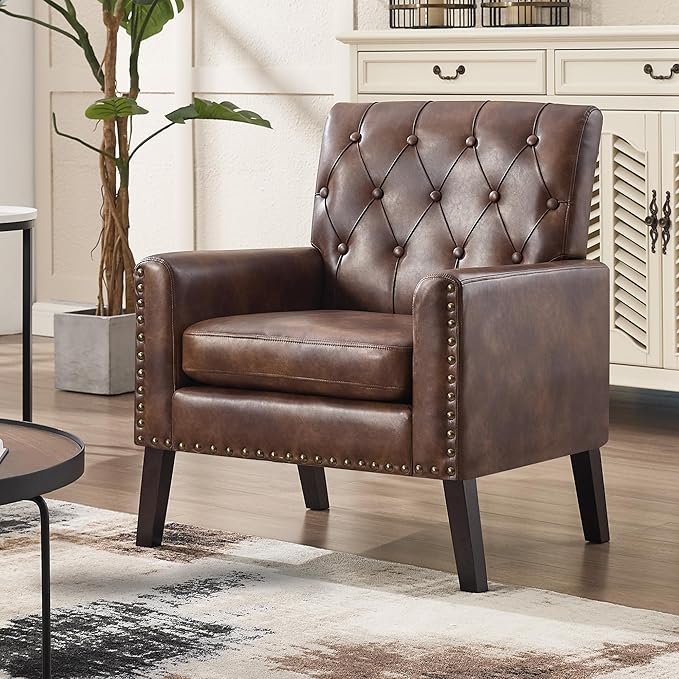 • Mid Century Modern Accent Chair – This vintage-inspired club chair combines a sleek silhouette with sturdy construction, making it a perfect addition to any living room, bedroom, or office. Its retro leather finish enhance your space with a touch of timeless elegance