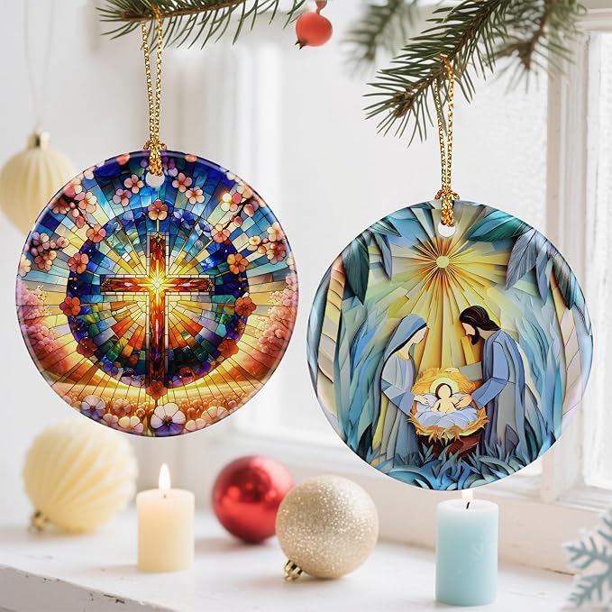 • 🎁【Exquisite Craftsmanship】Crafted from premium ceramic, this religious ornament is durable with vivid, fade-resistant colors that retain their vibrancy for years. Featuring a Christian cross, it captures the sacred symbolism of faith central to Christianity. Size: ~2.8×2.8 inches, ideal for Christmas trees, wreaths, or any religious holiday display.