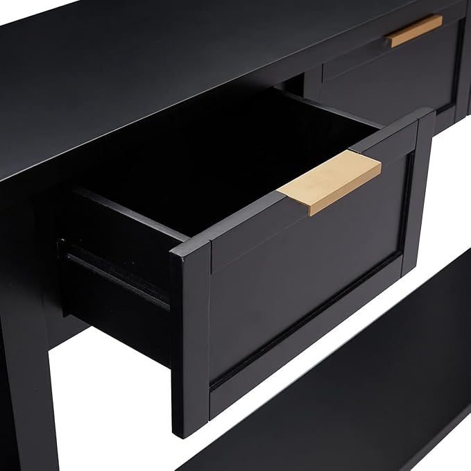 Long Console Table for Entryway with 4 Drawers, 60 Inch Entryway Table w/Open Shelf and Handmade Metal Handle, Narrow Foyer Sofa Table for Living Room, Bedroom, Hallway, Black