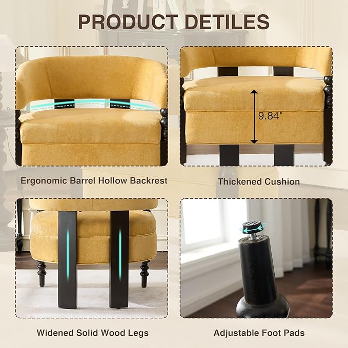• BARREL ACCENT CHAIR: This living room chair features a barrel-shaped backrest design that wraps your entire back and relieves back fatigue. It is an ideal choice for a comfortable reading chair or waiting room chairs. The ergonomic design makes sitting for a long time not tiring.