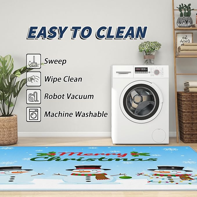 • Washable Rugs: Merry Christmas area rugs can be machine washed, vacuumed, broomed or dusted. Daily maintenance is easy and convenient, dust and dirt on the surface can be easily removed